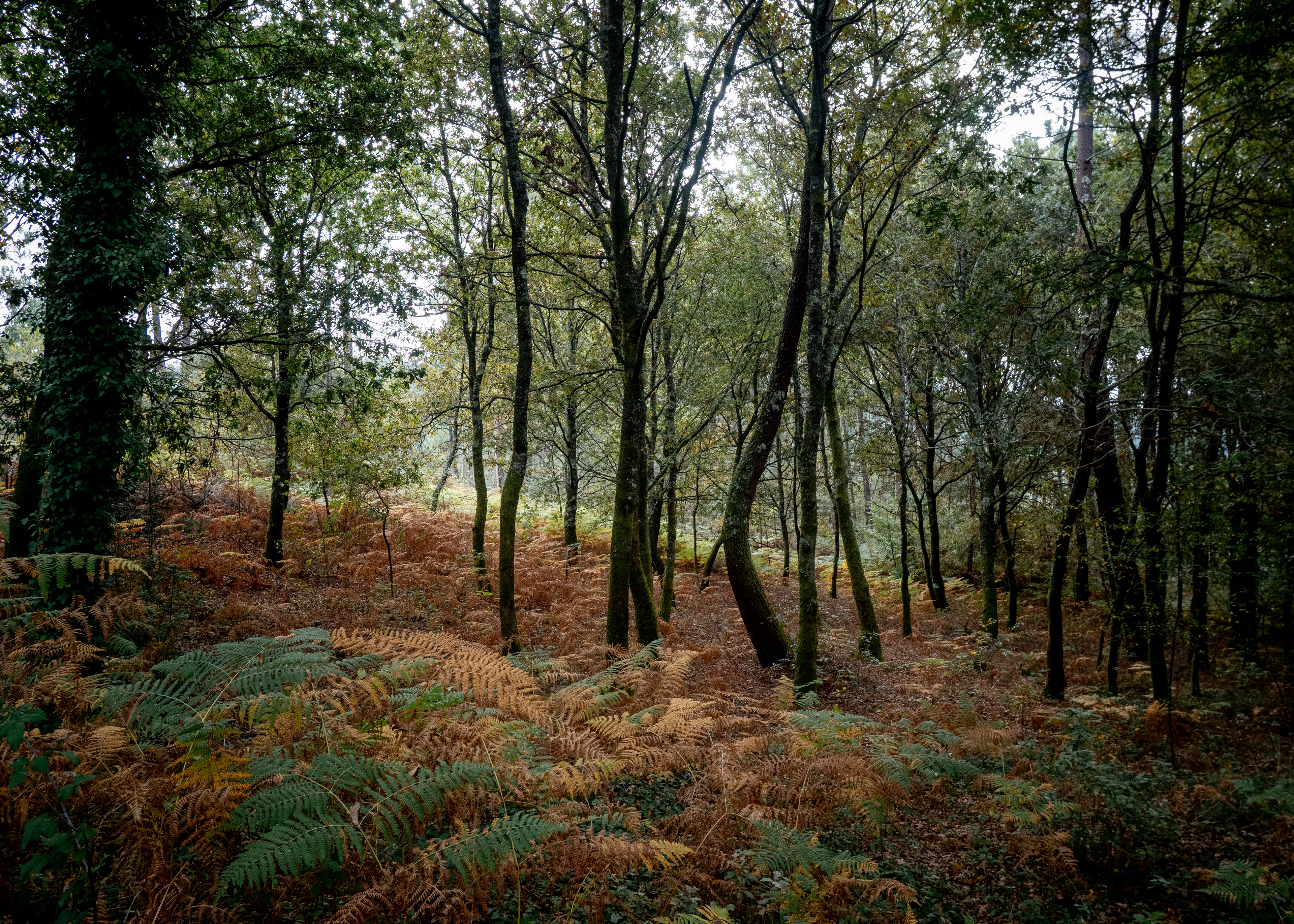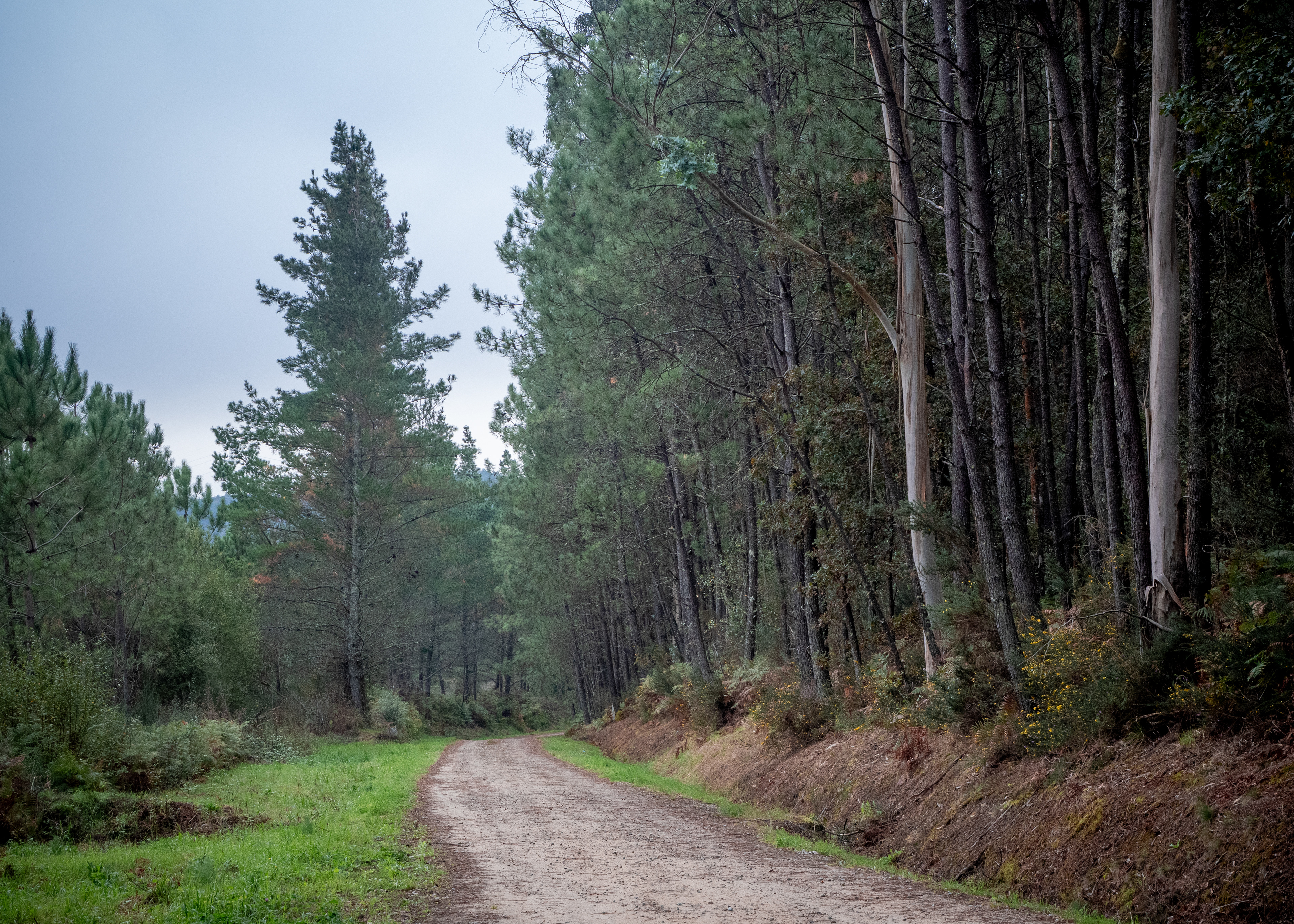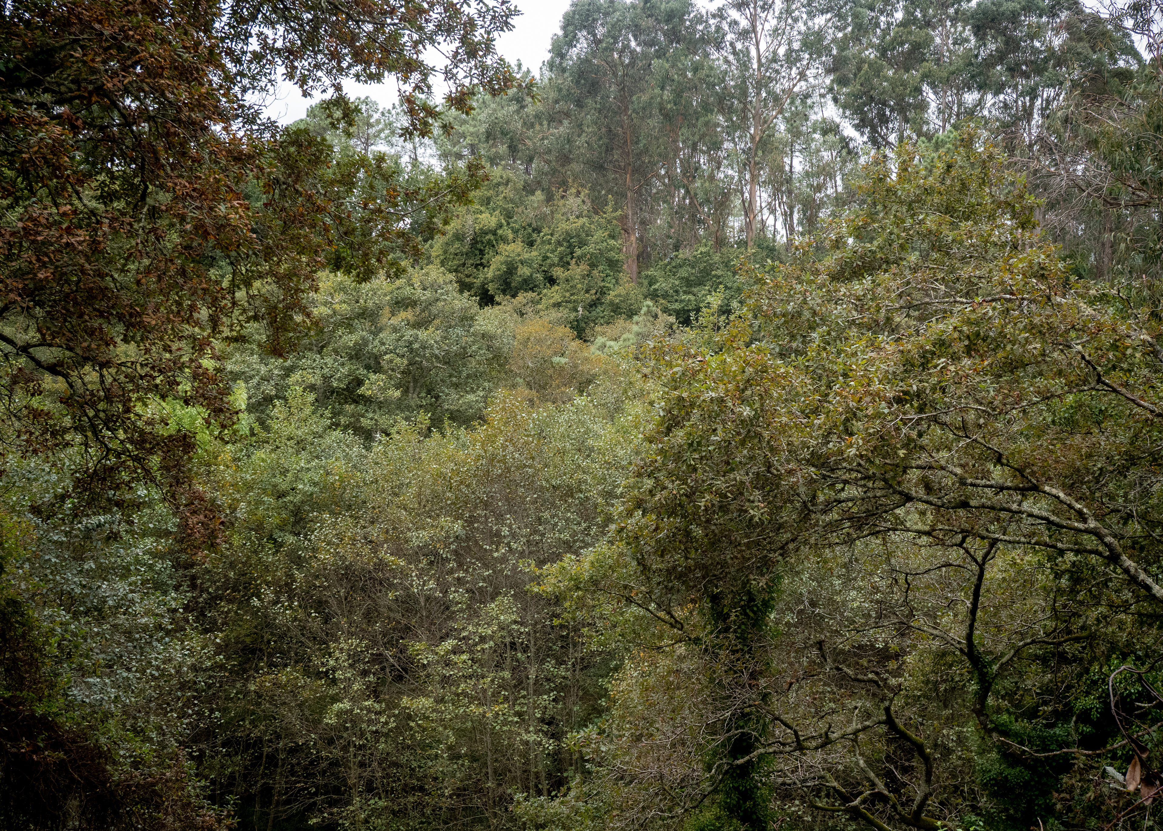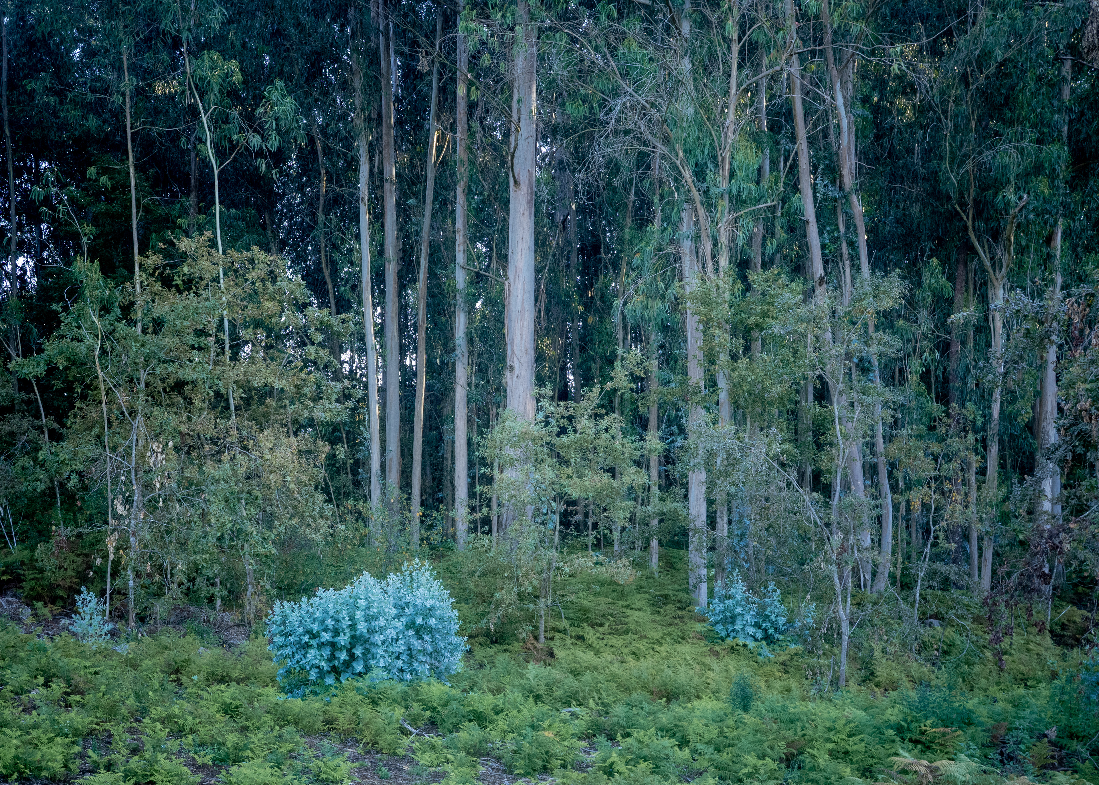 En una continua narración visual del Camino de Santiago, estas imágenes son de otros trayectos en los que me alejaba del mar y me sumergía en los bosques que se me iban presentando. Tramo de Carreço a Santiago de Compostela, 2025