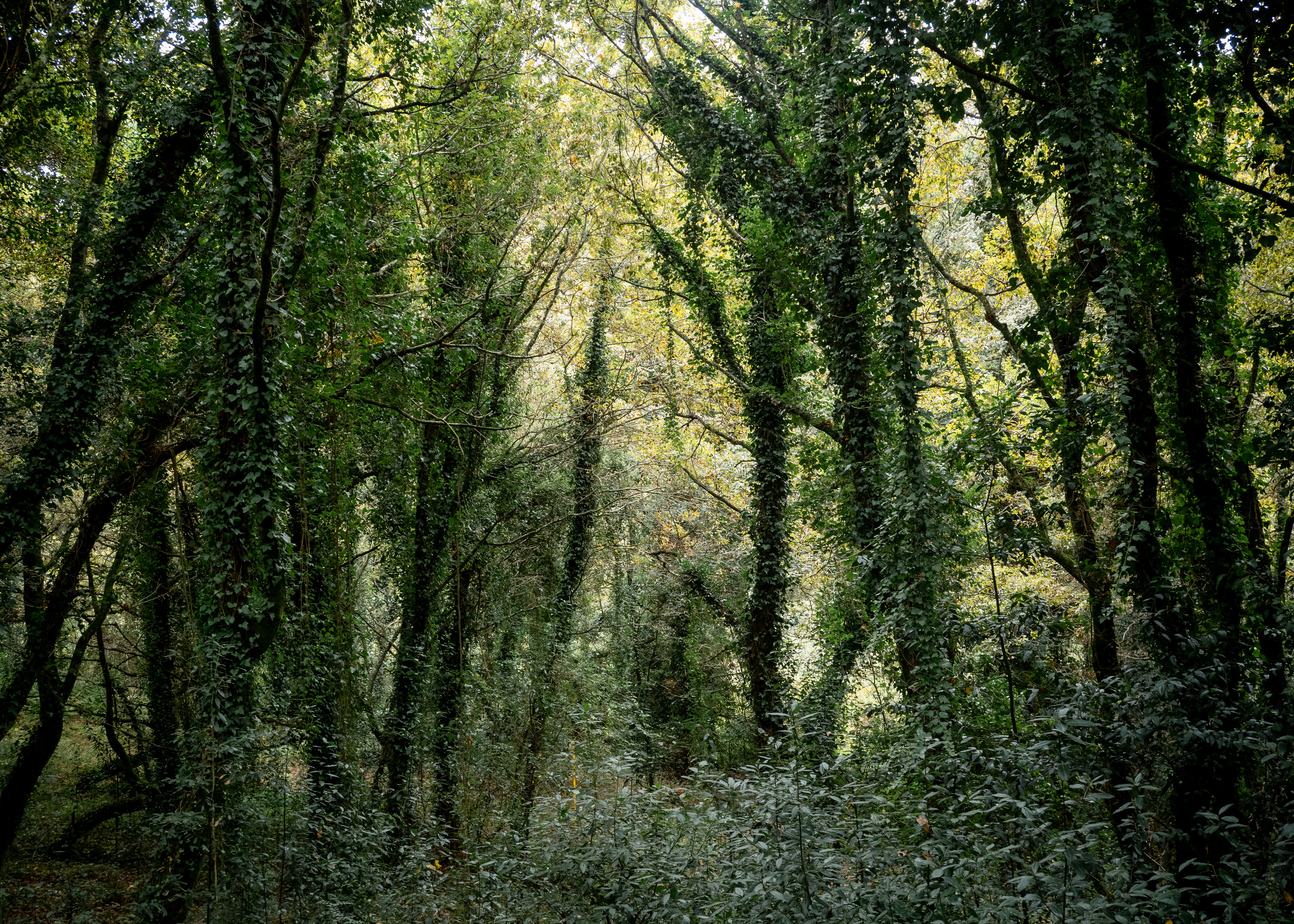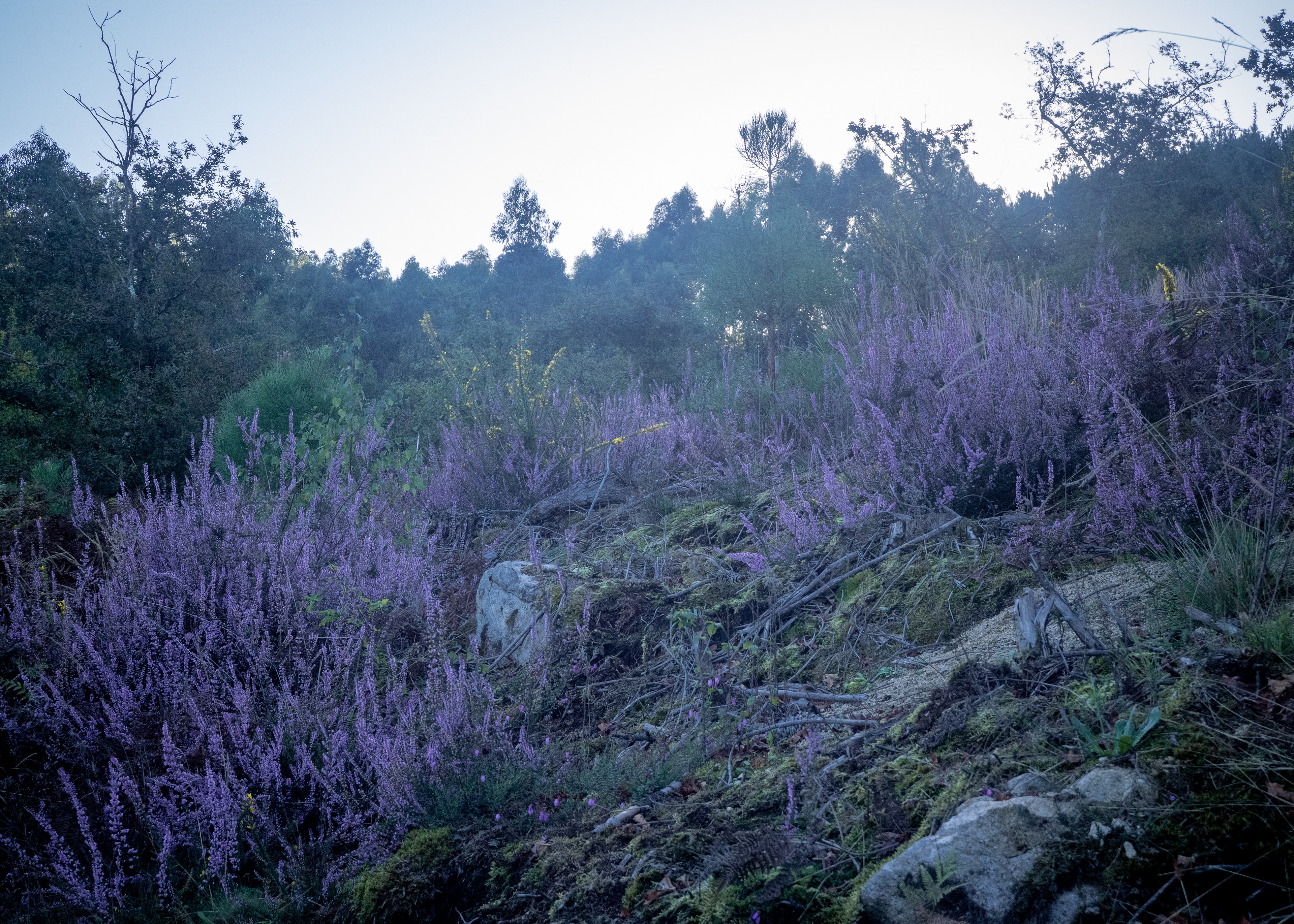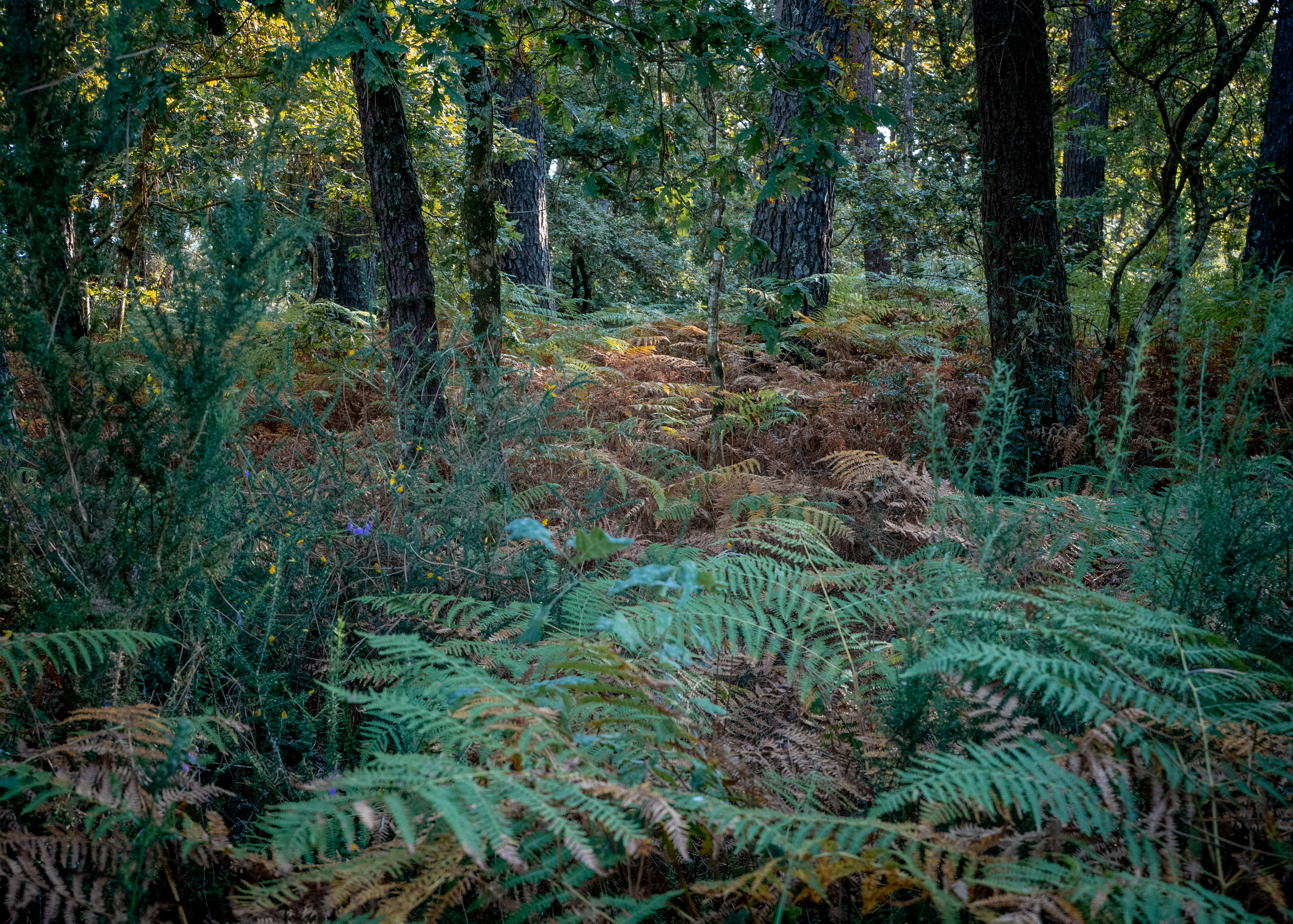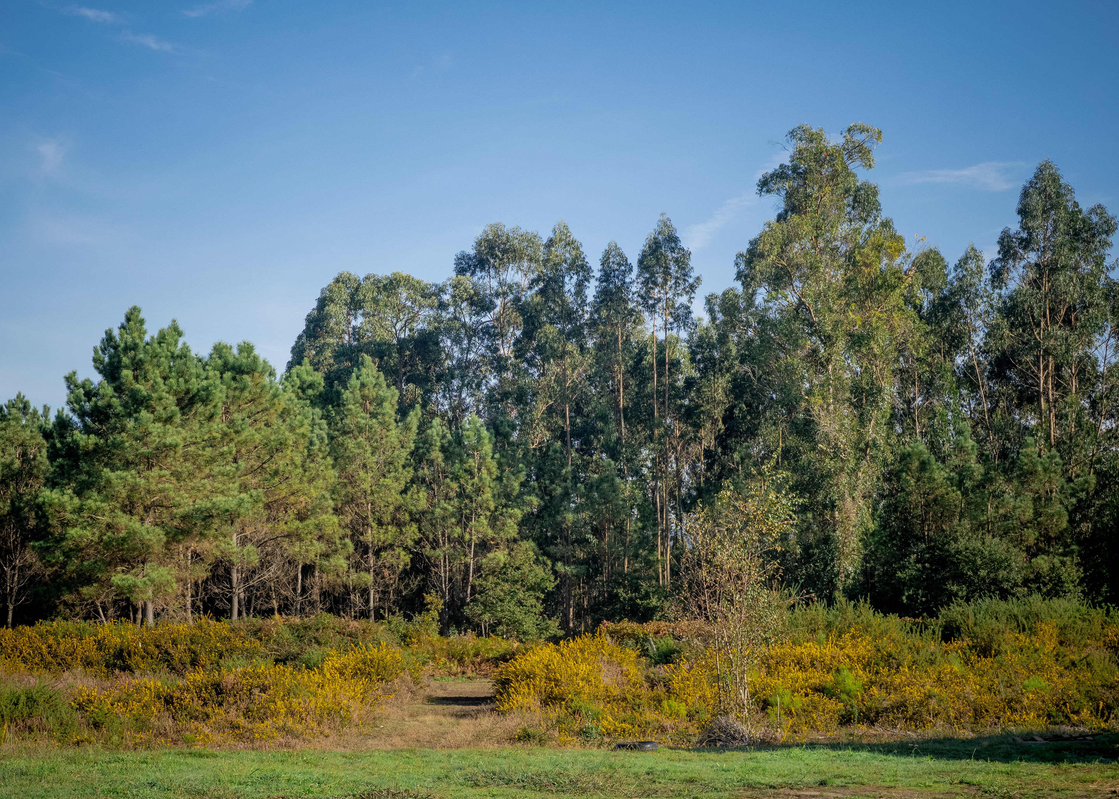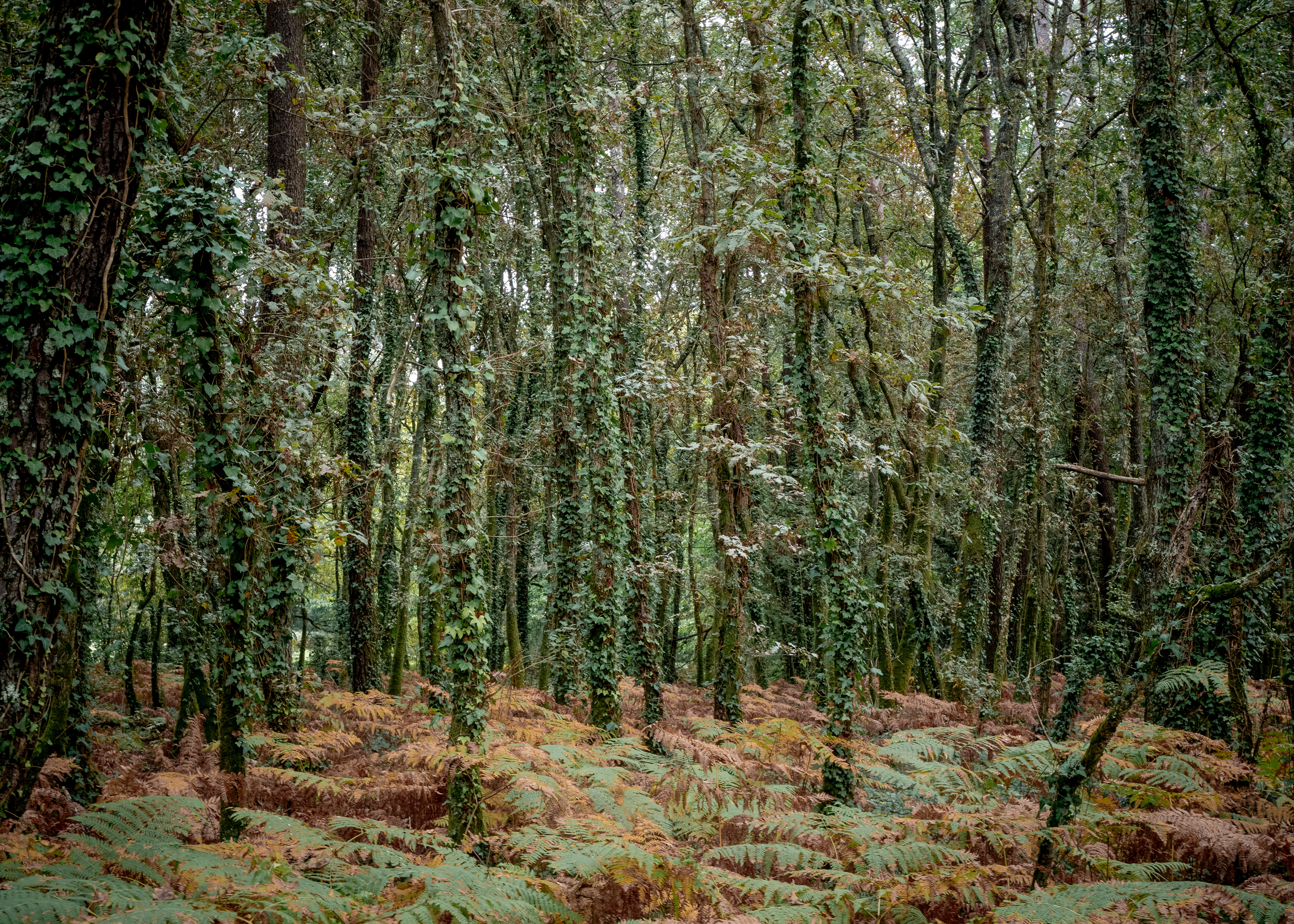 En una continua narración visual del Camino de Santiago, estas imágenes son de otros trayectos en los que me alejaba del mar y me sumergía en los bosques que se me iban presentando. Tramo de Carreço a Santiago de Compostela, 2025