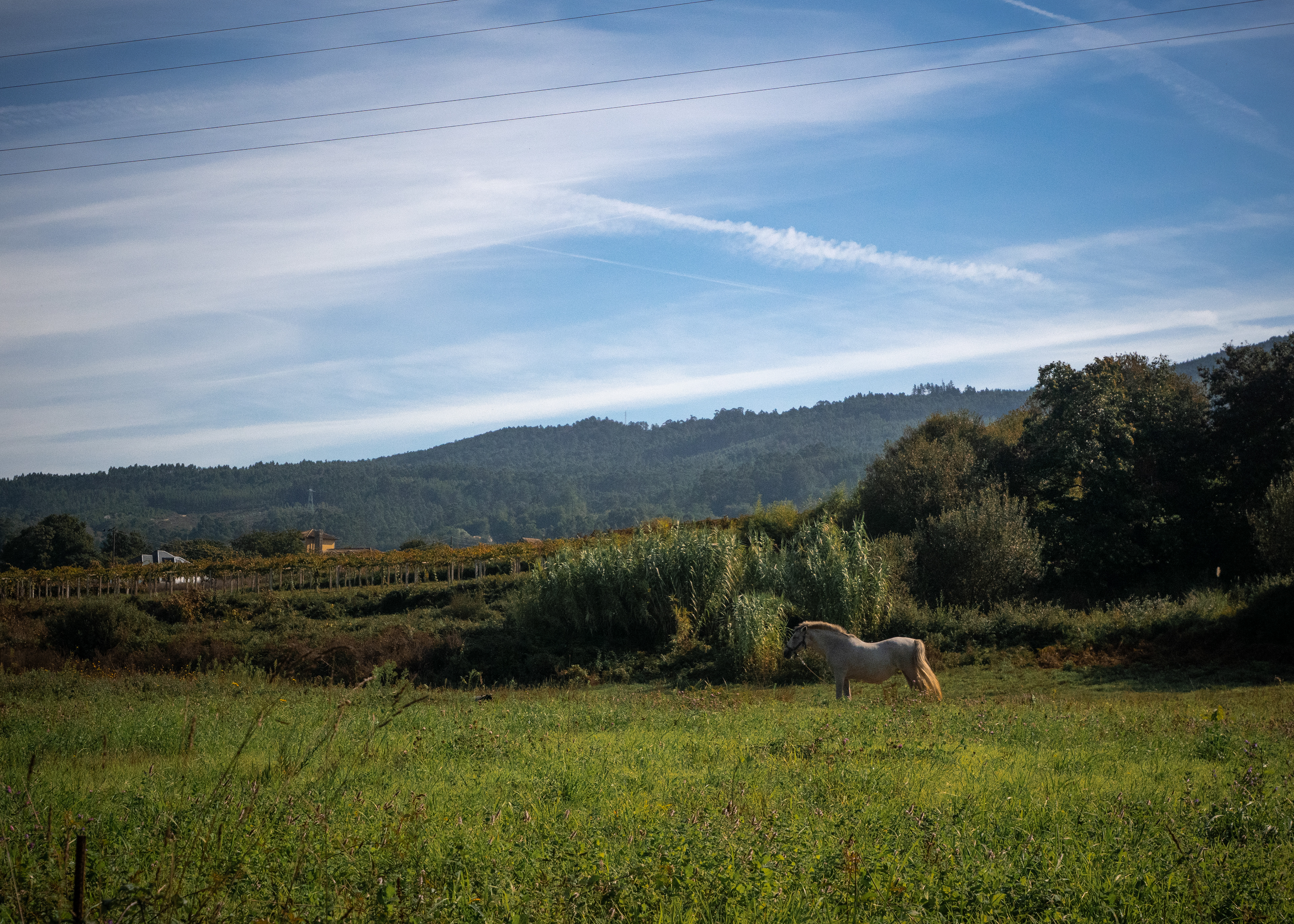 Estas imágenes giran en torno a la idea del encuentro: con espacios, personas, animales, objetos... Ellos fueron un espejo y la puerta para abrirme a vínculos inesperados. El video lo grabé desde un tren a mi regreso del Camino de Santiago. Matinosh a Santiago de Compostela, 2025