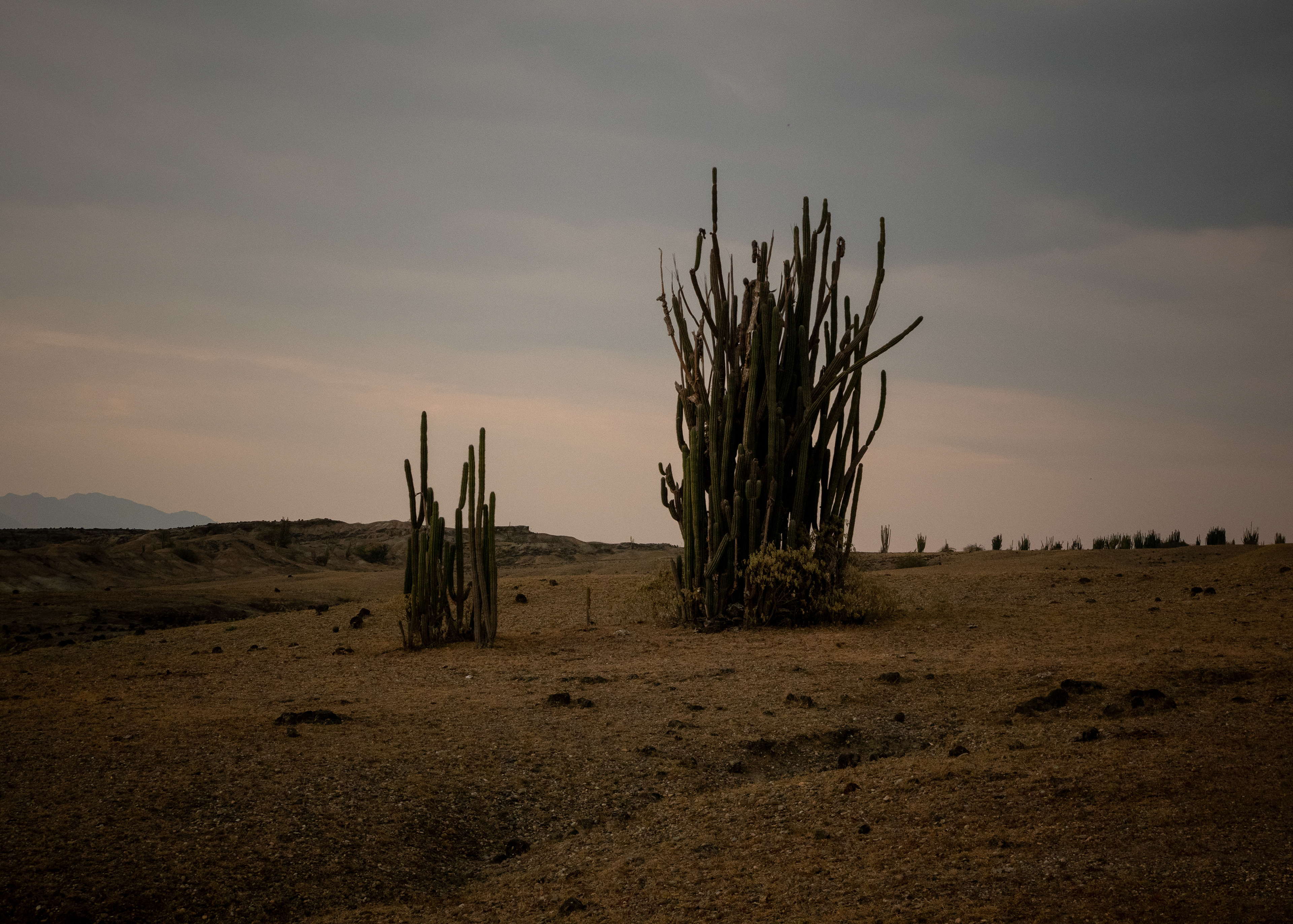 Imágenes de paisajes desérticos y de sus alrededores: de escenas que parecen en un no-lugar, de atardeceres en el río y noches con fogatas. Desierto de la Tatacoa, 2023