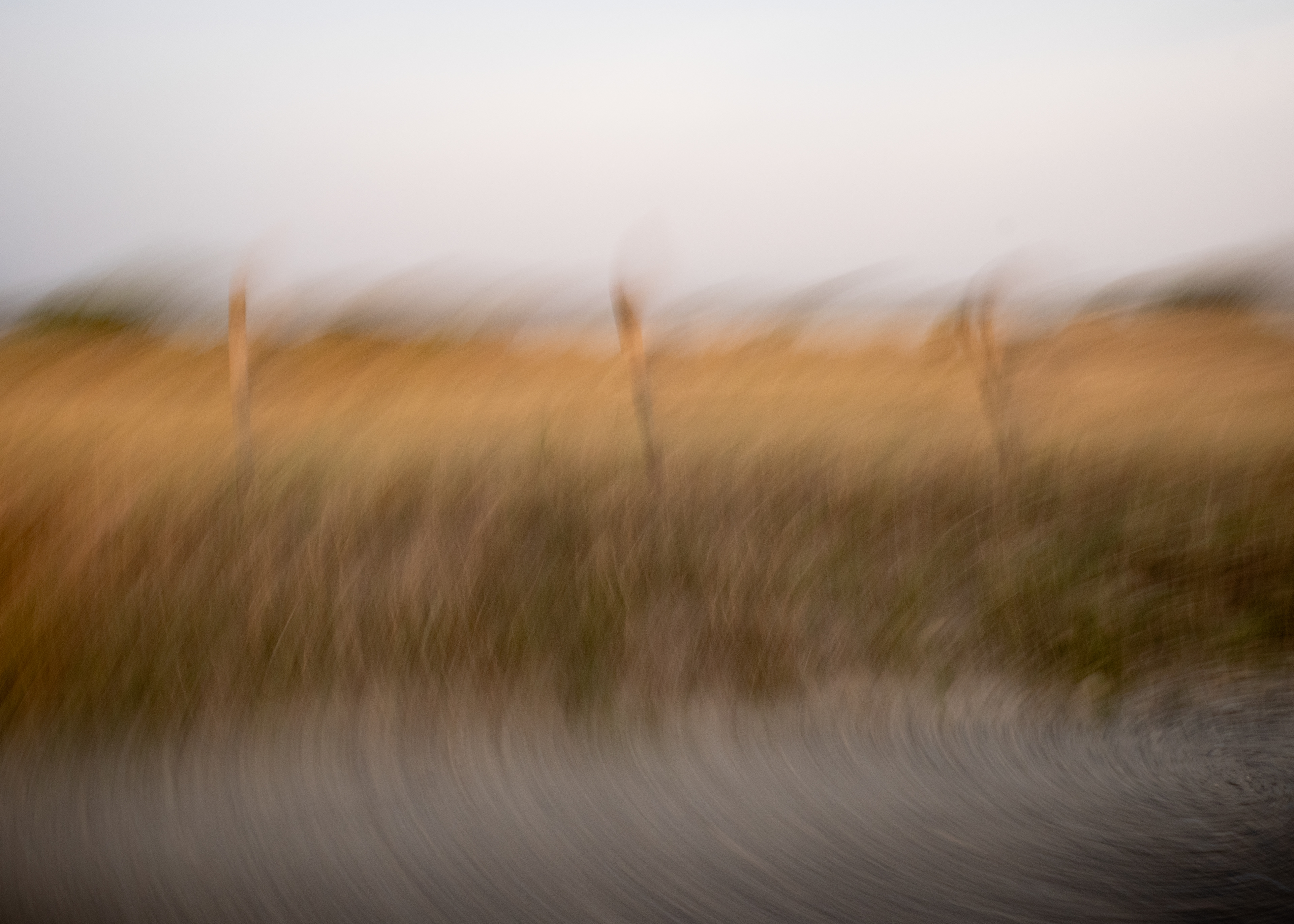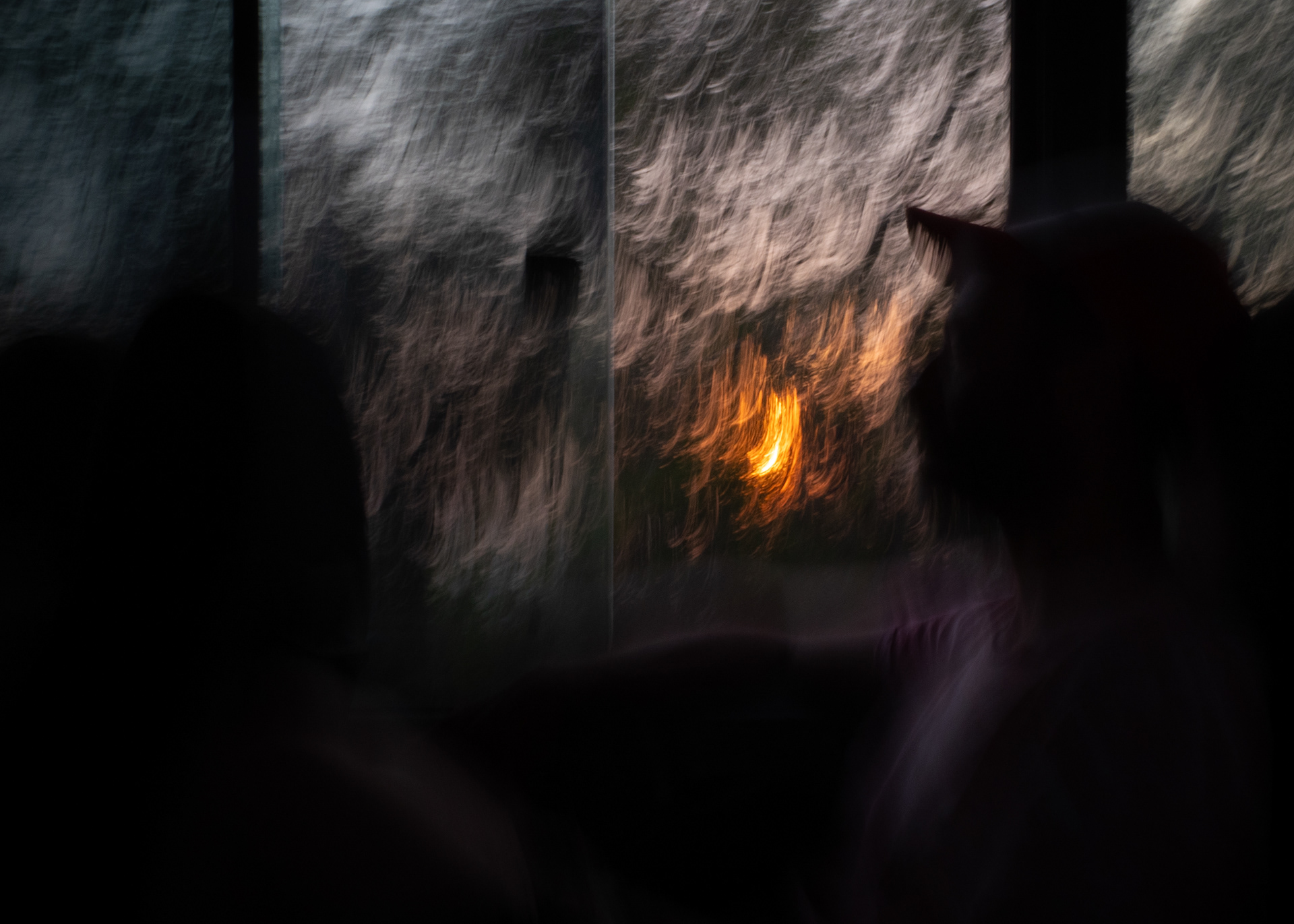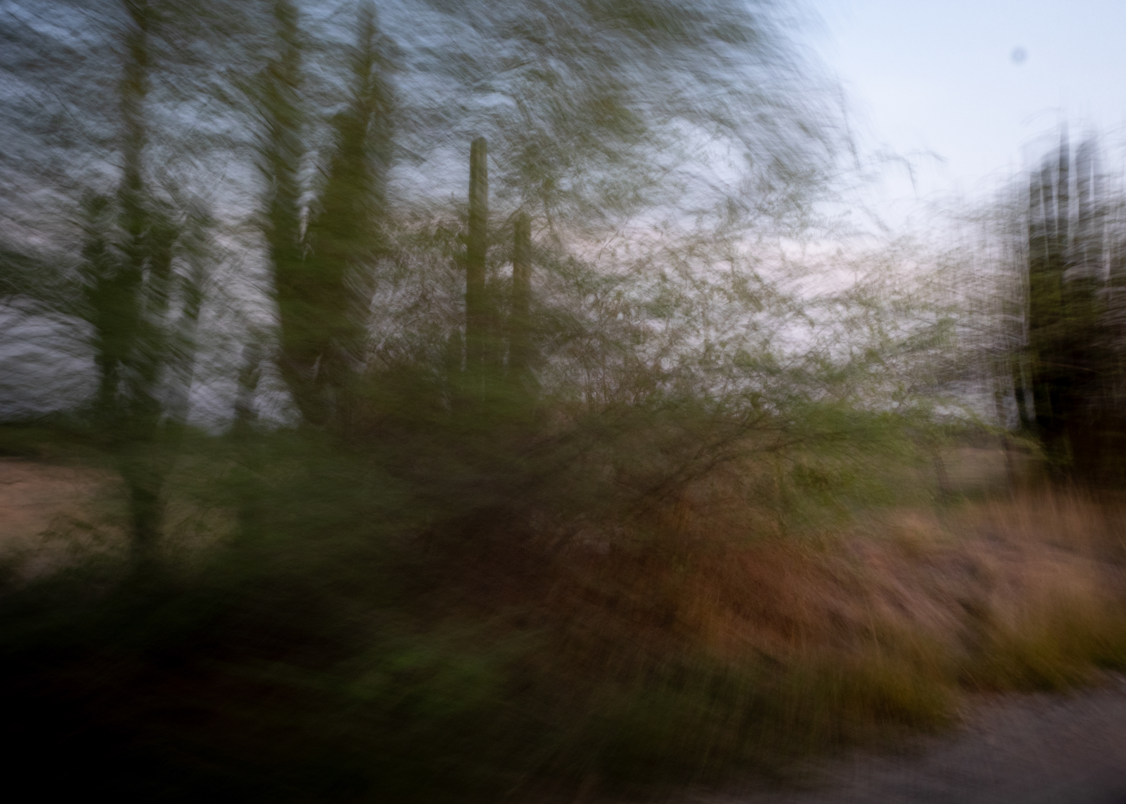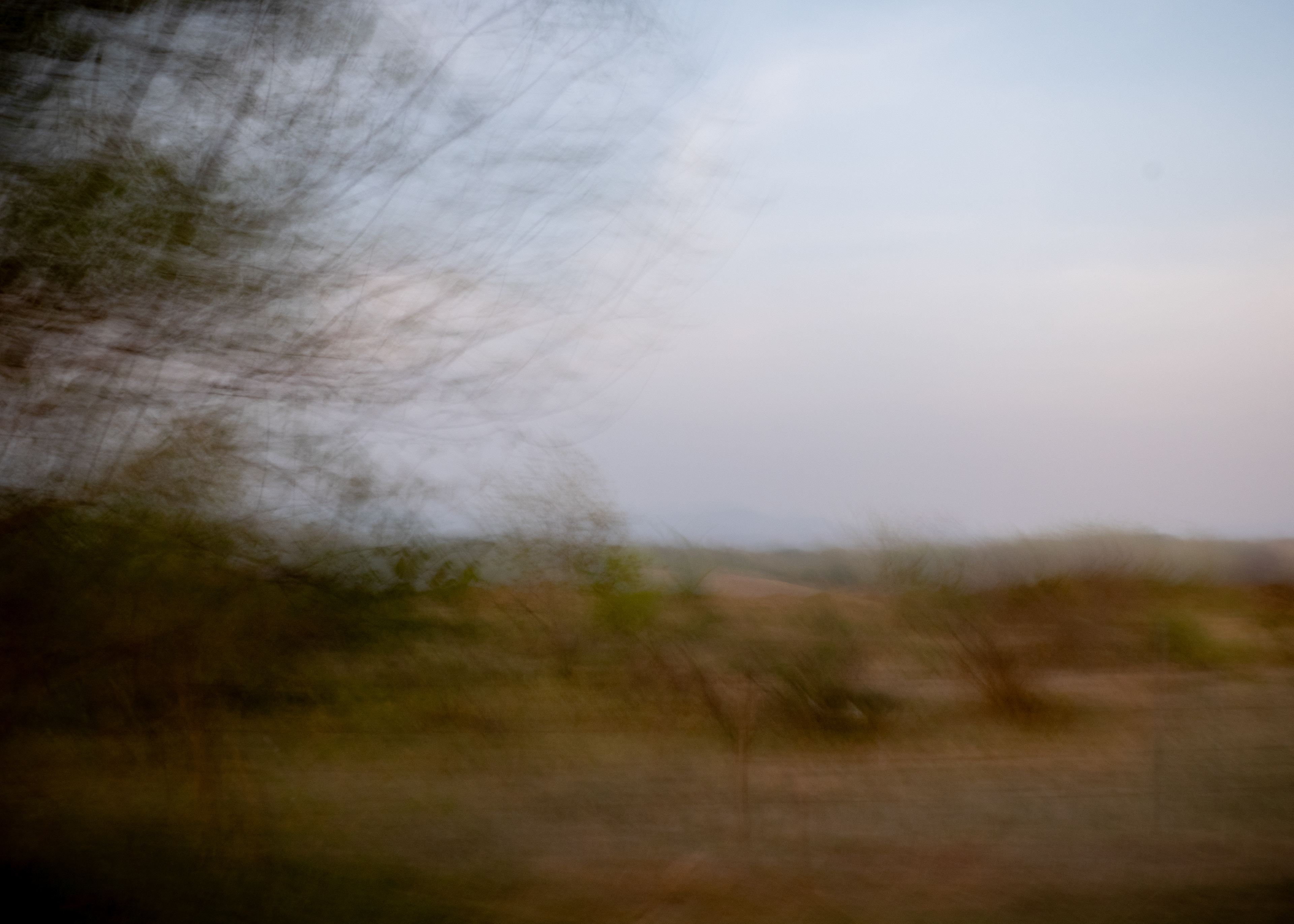 Imágenes desde un bus regresando de una larga jornada en el desierto. Ver el atardecer a través del movimiento. Camino a Villa Vieja, 2023